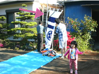 朝7時半から節句ののぼりを揚げました。たくましい絵柄が載っています。
