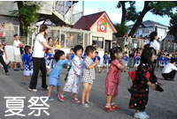 2006/7/1 くもり 保育園の夏祭りが行われました。みんな、浴衣や甚平を着て、踊ったり、太鼓をたたいたり、かわいい子供たちの出し物がたくさんありました。4歳のお姉ちゃんは、「マジレンジャーのマジイエローのダンス。1歳3ヶ月の僕も、「かえるの合唱」の踊りに参加しました。
