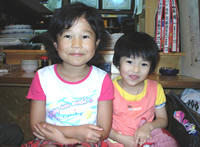 2006/7/6 雨 毎日、強い雨が続いています。梅雨が本格的になりました。台風も少し近くなりました。 夜、集まり(飲み会)があり、久しぶりに、大好きなおねえちゃんと遊びました。やさしく遊んでくれて、大人っぽくて、とてもあこがれています。お姉ちゃんは、小学2年生、4歳年上です。2人ならぶと大きいですね。7月から、バトン部に入ったとのこと、練習がんばってください。大会のときには、ぜひ見に行きますね!