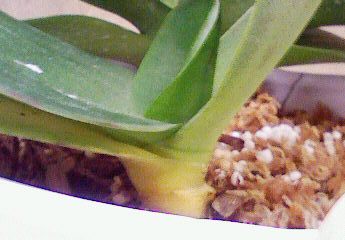 お返事、ありがとうございました。写真は今日撮ったものなのですが、昨日よりも状態は悪くなっているように思います。鉢ですが、ホームセンターで素焼き鉢と書いてあるものを購入してきたのですが、違うのでしょうか?通水性と書いてありますが、水をあげたあとは鉢も色が変わり湿っています。お花がついているときにいただいた状態は、ビニールのポットに1つずつ入り化粧鉢に3本立てで入っていました。花が終わったあと、花の終わった茎を切って、水苔で植え替えました。植え替えのときにハイポネックスキュートそのまま使える洋ラン用という液肥を与え、その後は苔がかわいていたら水を少し温かくしてバケツに鉢を浸し水遣りしています。やはり、厳しい状態でしょうか?せっかくいただき大事に育ててきたのでなんとも切ない気持ちです。