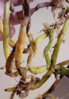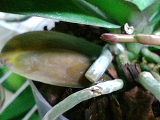 もう一株も見てください。これも最近購入した胡蝶蘭なんですが、これも何かの病気でしょうか?宜しくお願いします。