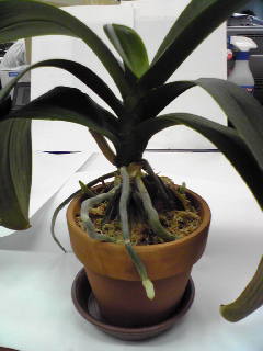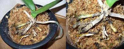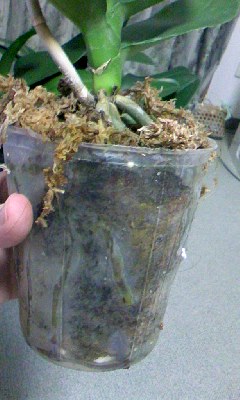 鉢と植え込み材料の組み合わせでは、ミズゴケで植えるなら今お使いの化粧鉢は一般的には誤りで、やはり素焼き鉢で植えるべきです。釉薬の掛かった殆ど透水性の無い、容量の大きな腰高鉢に植えるのであれば、バークと軽石の混合物で植え込むべきです。