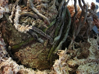 空中に露出している根にはカビはなく、普通に伸びています。 カビはどんどん増えているように感じられたので、水苔から出してみたところ、写真のような状況でした。