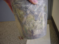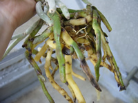 真ん中のあたりで左右に出ている根2本に白いカビがみられます。 |