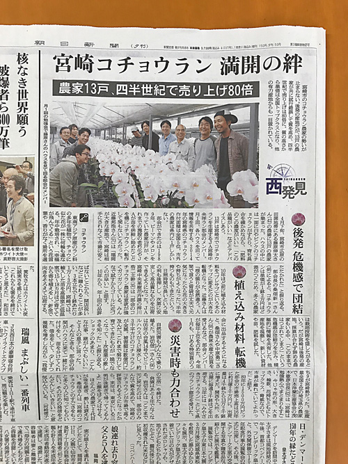 負債はあと4年でなくなる。岩切さんは「ここまで元に戻せたのは、部会のみんなで質を高めて、宮崎のコチョウランが市場で高く評価されるようになったから。来年は、東京にいる三男が後継ぎで帰ってくるんよ」と顔をほころばせる。ほとんどの農家で2代目が後を継ぎ、勢いは衰えない。桑畑さんは「宮崎のコチョウランのすごさをもっと多くの人に知ってもらいたい。そのための発信をどんどんしていきたい」と意気込んでいる 。