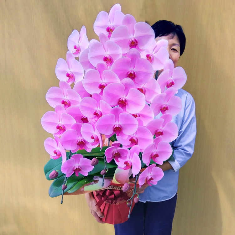 大変品の良いピンクの大輪胡蝶蘭です。ピンクの大輪は希少価値も高く最高の贈り物になります。 誕生日の贈り物や、開店祝いなどにも目を引くのでおすすめです!