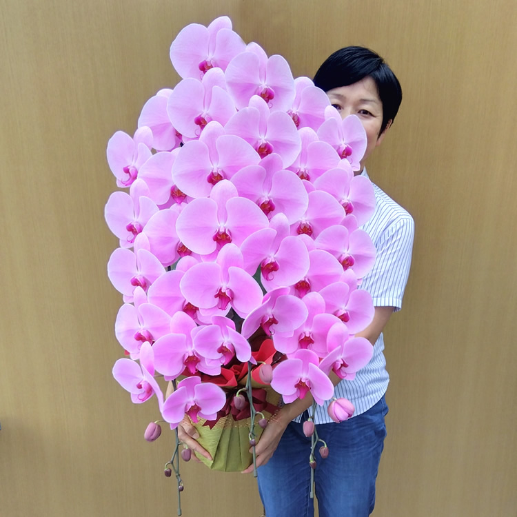 大変品の良いピンクの大輪胡蝶蘭です。ピンクの大輪は希少価値も高く最高の贈り物になります。 誕生日の贈り物や、開店祝いなどにも目を引くのでおすすめです!