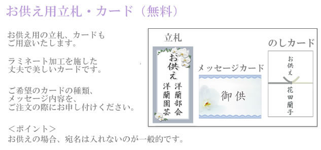 当園ではメッセージカード、立札もすべて無料でおつけしております。フリー文対応で、ご注文者様からお預かりした大切なメッセージを基に、一枚一枚、心をこめてお作りいたします。