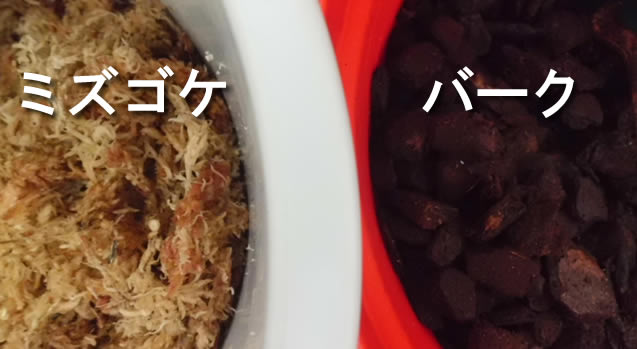 古くなったミズゴケやバークを、やさしくほぐして取り除きます。