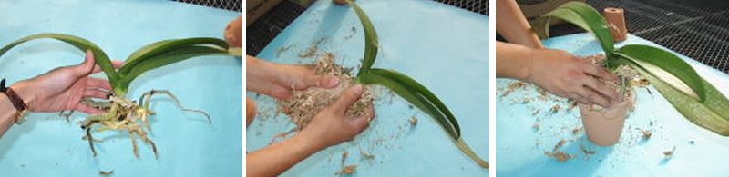 下準備をした株の根のまわりにミズゴケを巻きつけます。
