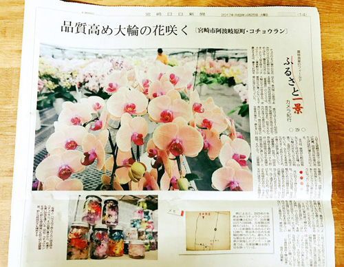 [メモ] 県によると、2015年の本県全体のコチョウランの生産面積は424アールで、出荷量は15万1000鉢。生産額は宮崎市のほか、1人が栽培している新富町も含めると約12億円。県全体の花卉生産額81億円のうち、最も大きな割合を占めているほか、県が実施したアンケート調査では、生産面積は全国5位を誇っている。 |