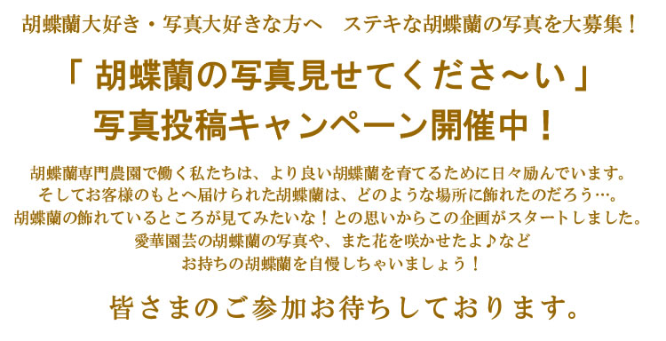 件名に「 胡蝶蘭の写真投稿 」と入力し、下記のアドレスまでメールでお送りください。